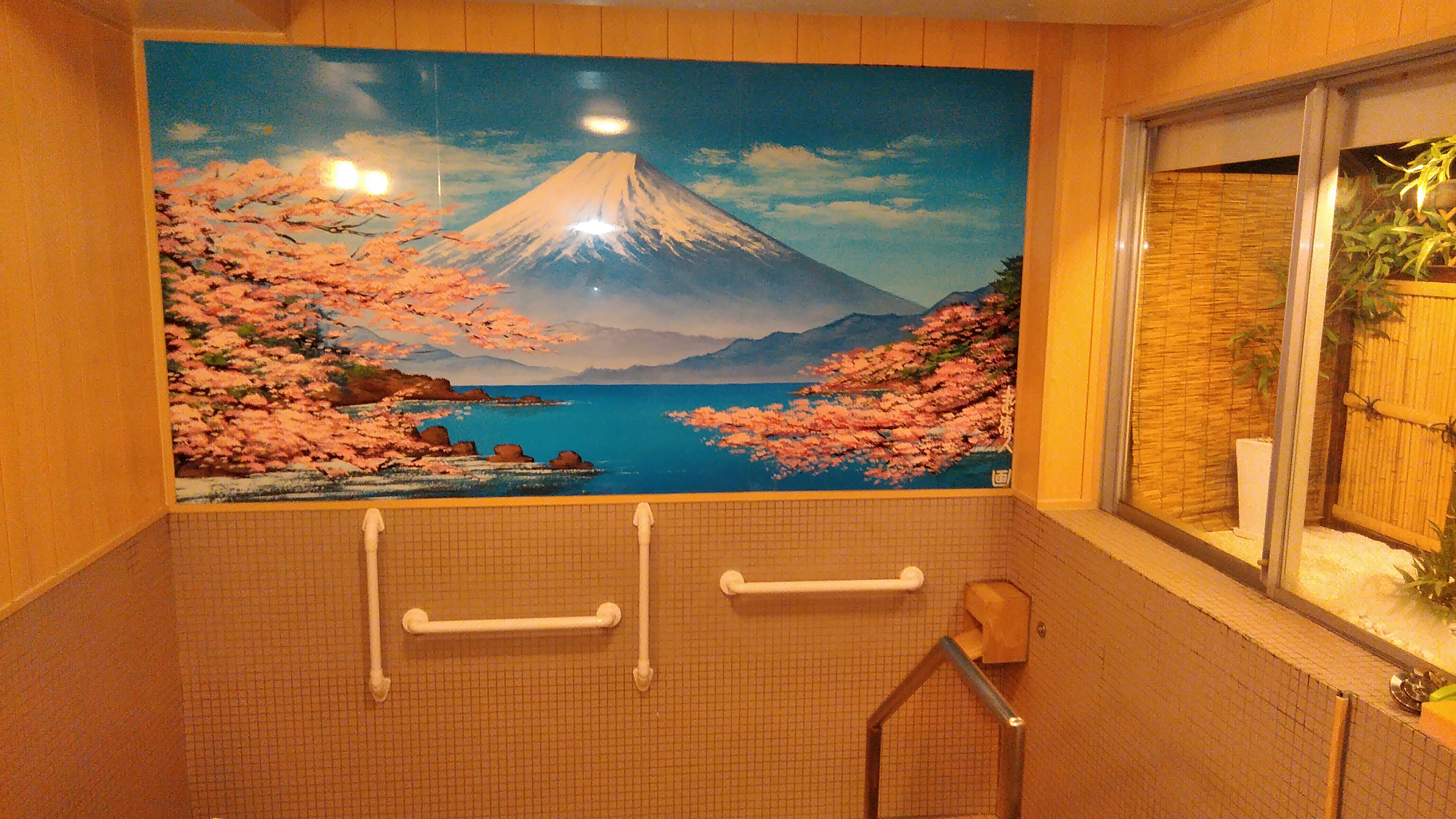懐かしい物と懐かしい曲で溢れた事業所。富士山が描かれた大きな銭湯風のお風呂が自慢です♪
